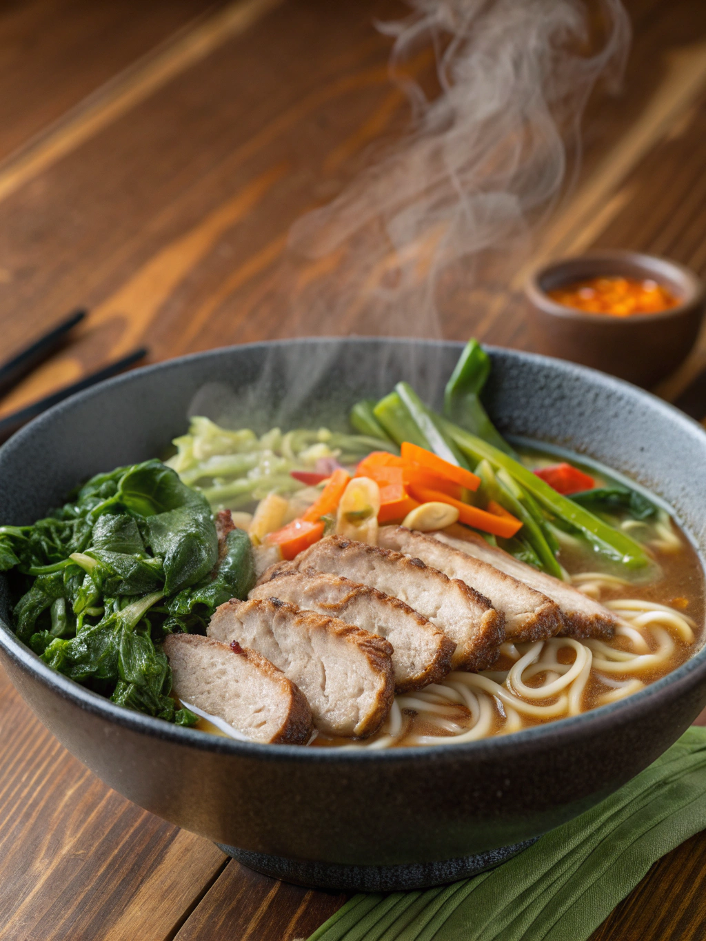 Store components separately for best results. Cooked noodles can be refrigerated for up to 3 days but may absorb liquid. The broth keeps well for 5 days refrigerated or 3 months frozen. Pre-cut vegetables stay fresh for 2-3 days in airtight containers. Soft-boiled eggs should be consumed within 24 hours for optimal texture. When reheating, add fresh vegetables to maintain their nutritional value and appealing texture.