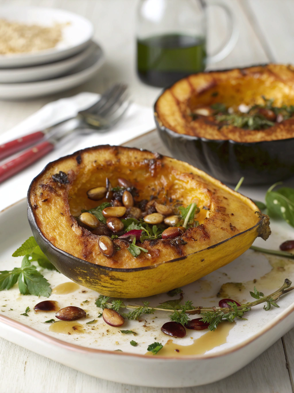 This versatile Roasted Acorn Squash pairs beautifully with numerous main courses:
