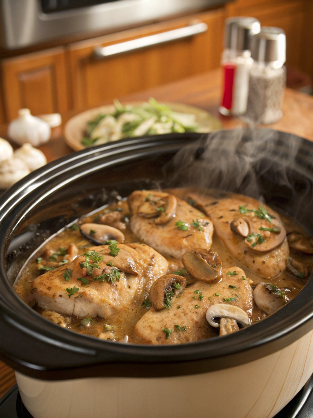 The extended cooking time allows the chicken to become incredibly tender while the sauce develops complex, layered flavors. Unlike rushed stovetop versions, this slow-cooked approach ensures every bite is infused with the rich essence of Marsala wine and mushrooms.