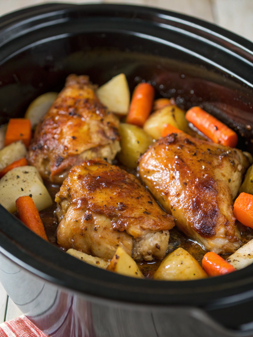 Overcooking Chicken Breasts: Chicken breasts cook 25% faster than thighs. If using breasts, check for doneness at 3 hours on LOW to prevent dryness.